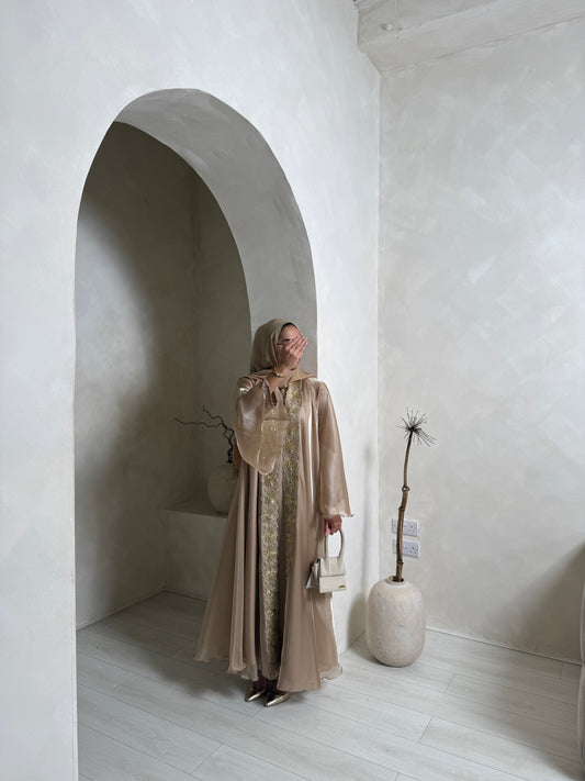 Zara - Kaftan Embellished Abaya (Champagne)