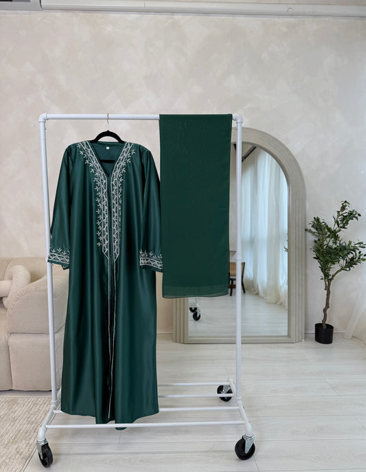 Liyana - Flowy open abaya with cuffed sleeves (Sage)
