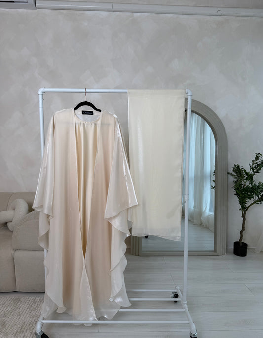Liyana - Flowy open abaya with cuffed sleeves (White)