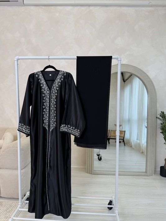 Liyana - Flowy open abaya with cuffed sleeves (Black)